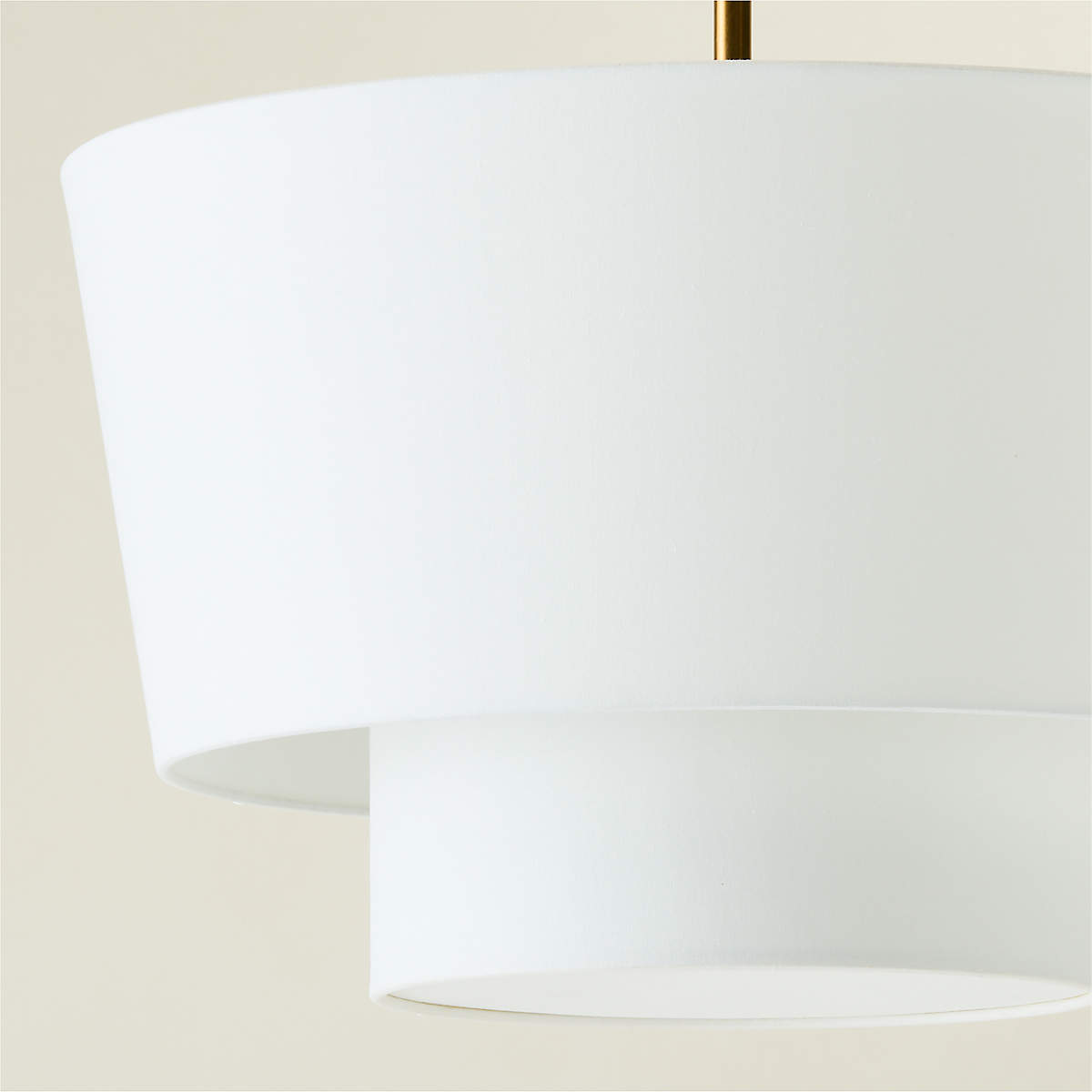 (Price Includes Shipping*) Elegant aged brass pendant by Los Angeles-based AD100 designer Ross Cassidy is complemented by a tiered linen shade for a warm, inviting glow. The warm, unlacquered brass is aged by hand in a multistep process to bring out the metal’s rich tonal highs and lows. The living finish will continue to deepen and grow richer over time.