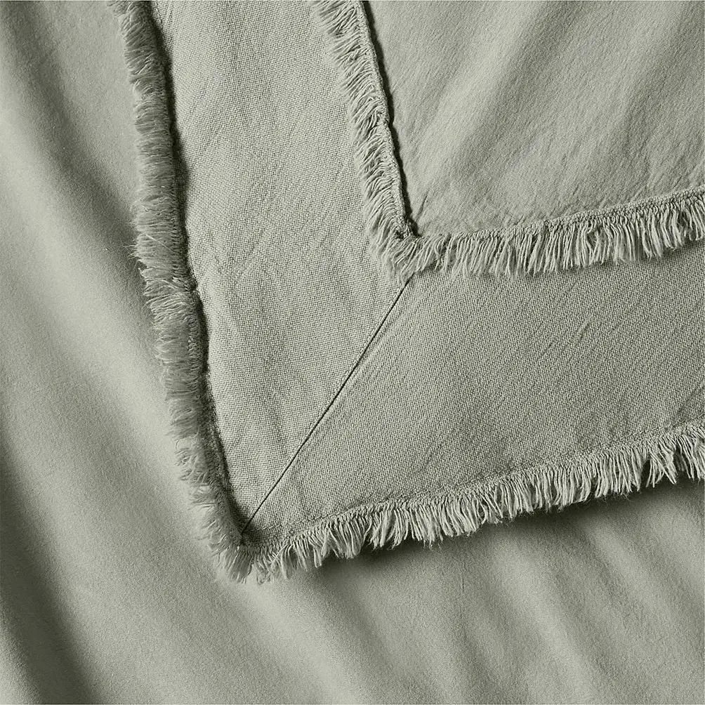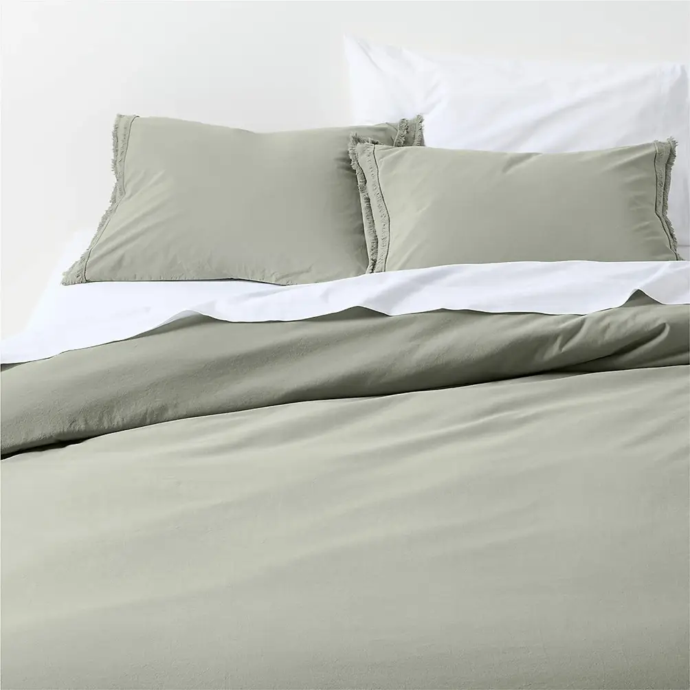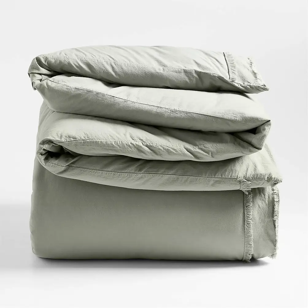Made of pure organic cotton, this duvet cover caresses with a supersoft washed finish. The sage-inspired green serves as an elevated neutral that pairs especially well with our wood bed frames. Eyelash-fringe detailing adds irresistible texture and a relaxed look, while inner corner ties keep your duvet insert neatly in place. Smooth and softening with every wash, the versatile cotton duvet cover provides year-round comfort.
