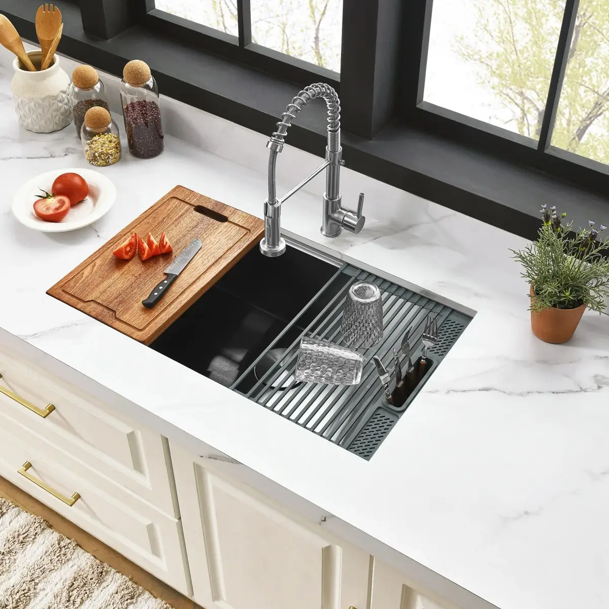 Kingston Sona GKUS321910 – Uptowne 32-Inch Stainless Steel Single Bowl Undermount Kitchen Sink with 6-Piece Kitchen Accessory Set, Brushed Stainless Steel