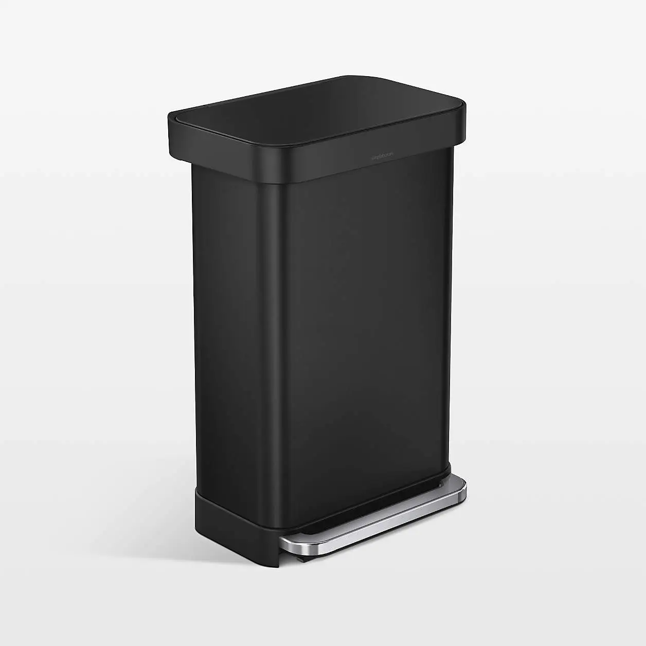 Simplehuman 45 Liter Rectangular Kitchen Trash Can with Liner Pocket, Matte Black Steel