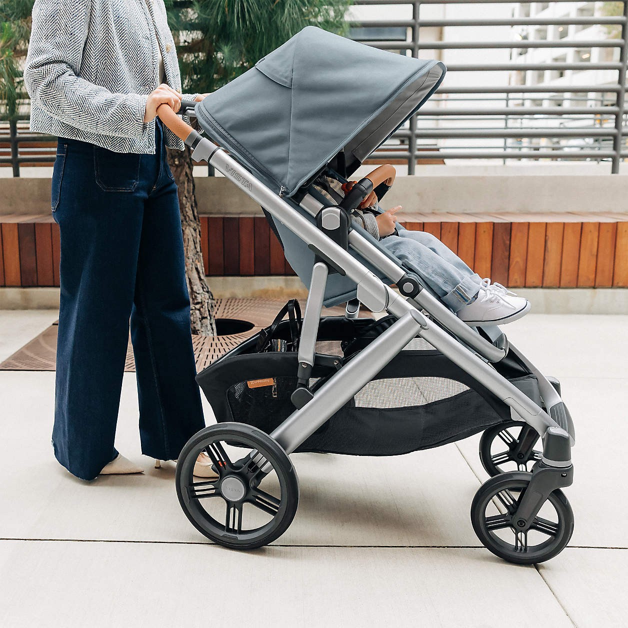 As your family grows, this game-changing stroller does too. The Vista starts out as a single ride, usable from birth with the addition of an UPPAbaby® bassinet or car seat (sold separately; no adapter needed). As your child gets older and maybe even welcomes new siblings, the stroller can be reconfigured in more than 30 ways and can accommodate up to 3 kids (with additional accessories). In every iteration, the Vista delivers a smooth and comfy ride, thanks to never-flat tires, an adjustable footrest, multi-position recline, an extendable UPF 50+ canopy and mesh panels for ventilation. The leather trim and stylish jacquard fabric are durable and have timeless appeal, too.